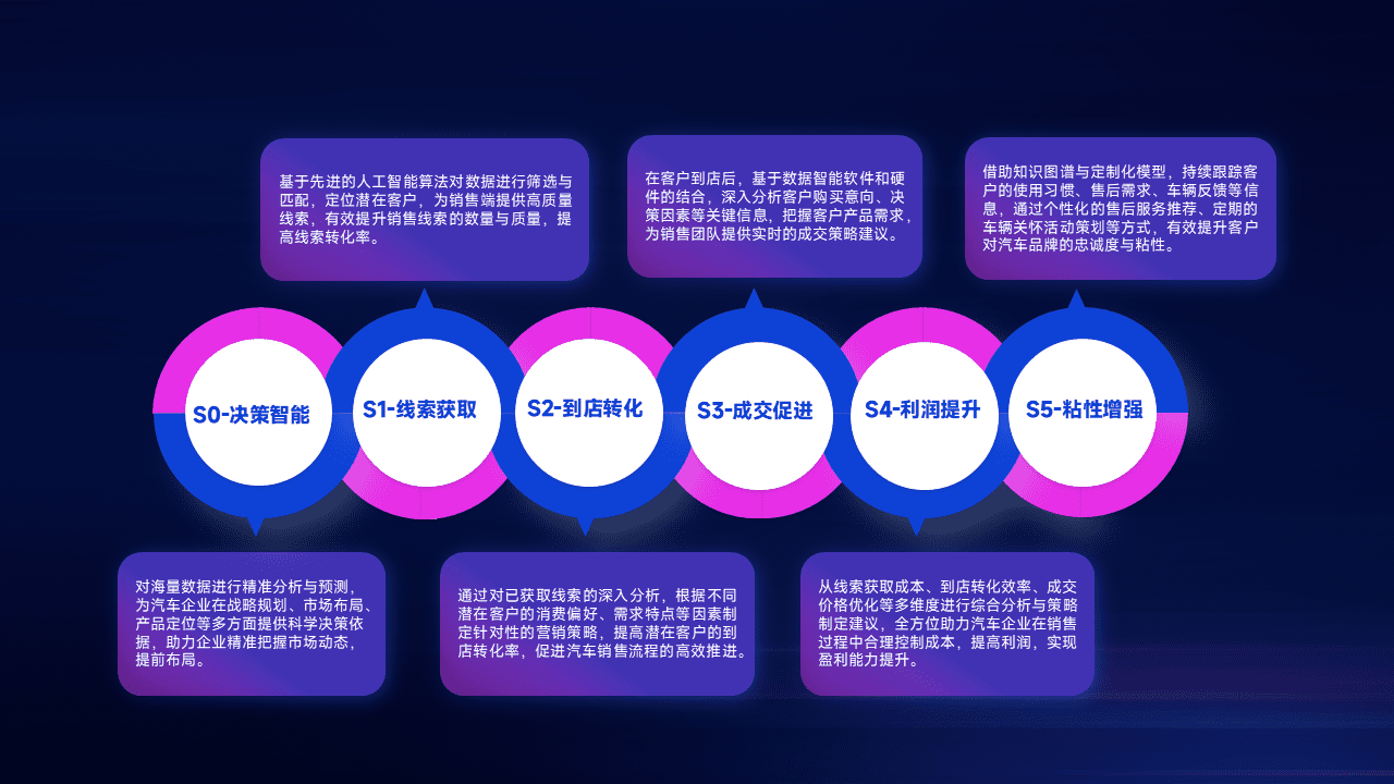 通过拓宽潜在客户来源、、优化线索分配并提高到店转化率,,以增强销售效率。。。同时,,利用线索数据不断优化分析模型,,,,有效提升转化率,,,,扩大营销影响力。。